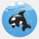 Caricature adorable chubby Orca baleine avec un petit coeur blanc près de sa queue.