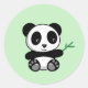 Sticker Rond Cute Little Panda avec Bâton en Bambou vert