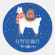 Sticker Rond Cute Llama Neige hiver Vacances de Noël Animal