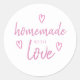 Sticker Rond Cute Maison Fabriquée Avec Amour Fuchsia Rose Blan