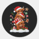 Sticker Rond Cute Merry Christmas Highland Cow Christmas Santa