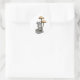 Sticker Rond Cute Mouse Standing on Rocks, with Mushrooms