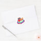 Sticker Rond Cute Orange Cat Holding Red Heart on Rainbow Cloud