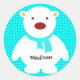Sticker Rond Cute Ours Polaire sur Aqua, Ajouter un nom