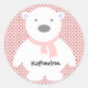 Sticker Rond Cute Ours Polaire sur Rose, Ajouter un nom