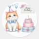 Sticker Rond Cute Pastel Kitten Gâteau d'anniversaire - Anniver