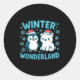 Sticker Rond Cute Penguin And Lar Bear Winter Wonderland Christ
