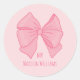 Sticker Rond Cute Pink Bow Girl's Monogram and Name