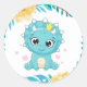 Sticker Rond Cute Prince Baby shower Dinosaure Turquoise et Jau