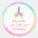 Sticker Rond Cute Rainbow Unicorn Magique fête d'anniversaire