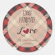 Sticker Rond Cute Red Classic Tartan Handmade with Love Quote