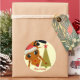 Cute Anime Reindeer avec chapeau de Noël Jolly Whimsical et Mid Century Moderne MCM Olive Green et Rustic Red Joyeux arbre de Noël avec étoile sur le Sticker supérieur.