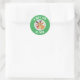 Cute Reindeer Snowflakes Kid`s Name Christmas Classic Round Sticker. Cute reindeer with a red nose on a green background with white snowflakes. The sticker has a name template - personalize it with your name.