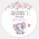 Sticker Rond Cute rose bébé Eléphant et Rose Frontière cuisine