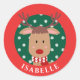 Sticker Rond Cute Rudolph Reindeer Noël Rouge Vert Classique