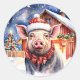 Sticker Rond Cute rustique Cochon de Noël et Grange Grande