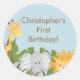 Commencez votre fête d'anniversaire dans la jungle de safari avec nos adorables autocollants de fête d'anniversaire animaux de safari. Nos autocollants de remerciement ont un lion et un éléphant de girafe sur un arrière - plan bleu clair avec des feuilles de jungle. Visitez notre boutique pour obtenir des cartes de remerciements, des invitations à l'anniversaire, des autocollants de remerciement et des timbres-poste assortis. © Clementine