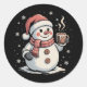 Sticker Rond Cute Snowman Boire Café Hiver Feu de neige Noël