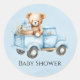Cette jolie toile d'aquarelle bleu bébé et un ours en peluche avec des cadeaux dans un vieux camion bleu vintage. Les invitations correspondantes et les fournitures de fête sont disponibles dans cette suite de collecte.