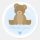 Sticker Rond Cute Teddy Ours Bleu Baby shower garçon Merci