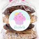 Sticker Rond Cute turquoise cupcake doux nom moderne école