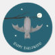 Une mignonne chauve-souris vampire qui se dresse juste contre un ciel turquoise vert clair de lune. Amusant pour Halloween. Art original de Nic Squirrell. Le texte peut être modifié pour customiser.