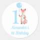 Sticker Rond Cute Whimsical Fox & Balloon Blue 1er anniversaire
