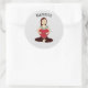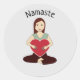 Sticker Rond Cute Yoga Girl tenant coeur rouge Namaste