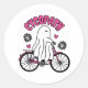 Sticker Rond Cycopath Halloween fantôme sur vélo rose