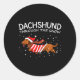 Sticker Rond Dachshund à travers la neige drôle chien Noël