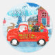 Sticker Rond Dachshund Chien en livraison de Noël Camion Neige