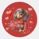Sticker Rond Dachshund Chien Red Valentine Coeurs
