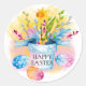 Les jonquilles jaunes et les oeufs roses et bleus "Happy Easter" autocollant pour les scellés d'enveloppe, les sacs et les livres à gratter,