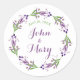 Un autocollant de mariage de jardin de cottage pour décorer les faveurs de vos invités. Doté d'une couronne d'aquarelle colorée inspirée de la nature, de feuilles verts et de couleur prune. Insérez vos noms et votre date de mariage.