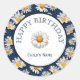 Daisies on Blue Denim Birthday Classic Round Sticker: This charming sticker features a delightful combination of vibrant daisies against a textured blue denim background, making it perfect for adding a touch of retro, whimsical flair to birthday celebrations. The classic round shape ensures easy application and versatility for various uses, from birthday cards and party favors to personalizing gifts and crafting projects.