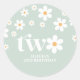 Deux! Autocollants de fête de 2ème anniversaire inspirés par Retro avec marguerites de style 70's et polices et couleurs boho.