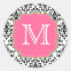 © 2013 Socialite Designs. Notre élégant damas noir et blanc, avec bannière de texte rose et vert, fait un bel autocollant pour sceller vos enveloppes d'invitation ou vos faveurs. La police monogramme peut être modifiée.