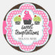 © 2012 Socialite Designs. Notre élégant sceau / autocollant de boîte de boulangerie rose, blanc, turquoise, vert et marron a trois cupcakes, dans une bannière à pois blanc, un arrière - plan damassé et ruban rose. Tous les éléments de conception peuvent être déplacés, redimensionnés ou supprimés pour convenir à votre entreprise de boulangerie. Il vous suffit de remplacer notre texte modèle par vos informations professionnelles.