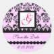 Sticker Rond DAMASK MONOGRAM, fuchsia rose