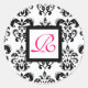 Sticker Rond DAMASK MONOGRAM, fuchsia rose
