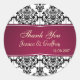 Sticker Rond Damask noir, blanc, Merci magenta Mariage