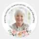 Souvenez-vous de votre être cher avec ces beaux autocollants. Design dispose d'une photo et votre texte personnalisé orné de belles fleurs dressées contre un arrière - plan blanc (changer facilement la couleur arrière - plan). Ils font très réfléchi Célébration de la vie autocollant faveurs et des souvenirs que la famille et les amis chériront.