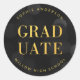 Élégant autocollant de graduation avec les mots "Graduate" en faux feuille d'or contre un bokeh foncé lumières motif arrière - plan. Personnalisez ceci avec vos détails en remplaçant le texte de l'espace réservé. Pour plus d'options comme changer la police, la taille/la couleur du texte ou l'espacement entre les lettres, cliquez sur le bouton "Personnaliser". *Veuillez noter que le filigrane Zazzle qui apparaît dans l'aperçu du zoom n'apparaîtra PAS sur le produit imprimé final. © Bois de rose et agrumes