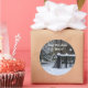 Neige fraîche tombée avec des arbres enneigés et des empreintes sur le pont avec des rails noirs, et la neige surmontée poteau de lumière noire dans le jardin complètera vos enveloppes de carte de voeux de vacances et peut être utilisé comme étiquette cadeau autocollants! Laissez le libellé De notre maison à la vôtre tel quel, ou personnalisez. Photographie originale de TamiraZDesigns.