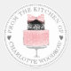 Jolie étiquette ronde pour gâteaux en aquarelle rose avec "de la cuisine de" , étiquettes rondes pour produits de boulangerie, avec une typographie classique et ouverte. Ajoutez simplement votre nom. Un style accrocheur pour vos produits de boulangerie. Vous pouvez utiliser l'outil de conception simple pour changer le style et la couleur des polices.