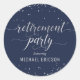 Ces autocollants ronds élégants et festifs de la fête de la retraite présentent des confettis en argent (feuille simulée) avec des lettres assorties qui disent "Parti de la retraite" dans une belle police de caractères. La couleur arrière - plan est bleu marine, mais peut être changée à n'importe quelle couleur de votre choix.