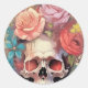 Sticker Rond Death by Pastels, Roses and Peeking Gothic Skull