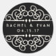 Scellez vos enveloppes d'invitation, vos faveurs et plus encore avec nos autocollants personnalisés avec du texte en ivoire et des accents sur un arrière - plan noir croustillant. Le design rond présente vos noms et date mariage en lettres de style art déco ornées d'illustrations florissantes vintages. Coordonné avec notre collection de faire-part de mariage Deco Flourish.