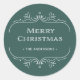 Ces stickers de vacances élégants ont une touche moderne sur l'art déco classique. Des bordures géométriques blanches et ornées décorent un arrière - plan vert festif pour un look de vacances vintage et spectaculaire. La typographie classique dit "Joyeux Noël".