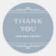Ces stickers de mariage glamour ont une touche moderne sur l'art déco classique. Des bordures géométriques blanches et ornées décorent un élégant arrière - plan bleu poussiéreux pour un look de mariage spectaculaire et vintage. La typographie blanche classique dit "merci", ce qui les rend parfaits pour ajouter à vos faveurs de mariage.